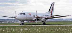 The Grumman Gulfstream I (also company designation G-159) is a twin-turboprop business aircraft, introduced in the late 1950s. The aircraft was intended as an executive transport version of the predecessing TF-1 Trader aircraft, with turboprop propulsion, however subsequently Grumman opted for a clean-sheet design instead. The new design accommodated for a standing cabin, which was available in several configuration from high-density to executive layouts. The overall construction comprises of low-wing cantilever monoplane configuration, the fuselage being semi-monocoque aluminium alloy. The Gulfstream I utilised Rolls-Royce Dart engines.